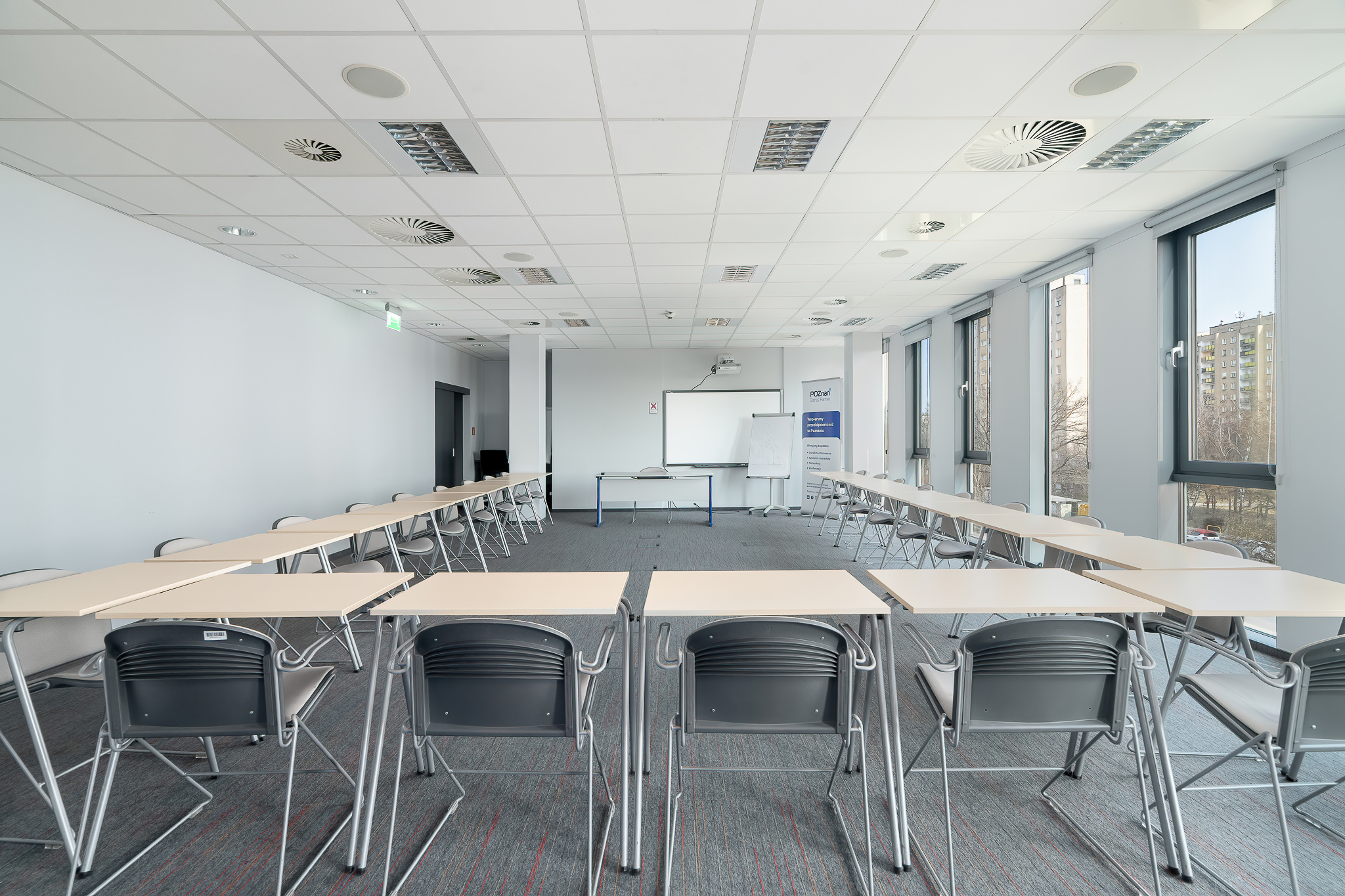 Room “C” of the Poznań Technology and Industrial Park is located on the second floor of the six-story, Class A building no. 404. A catering service is available on the ground floor.